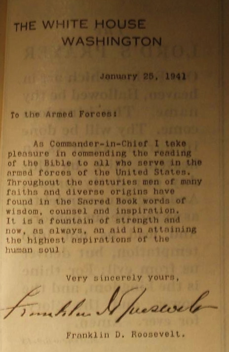Given the way certain people are demanding the military treat the Bible currently, it seems like this President of the United States would have been crucified had he made this statement today — especially since he wrote it in the front of New Testaments produced for, and distributed to, the US military.
